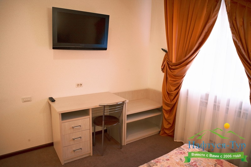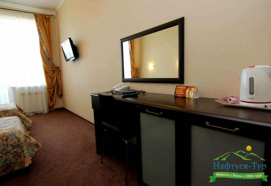 мини-холодильник, сейф, система общего кондиционирования, телевизор ЖК, телефон, чайный набор посуды, электрочайник