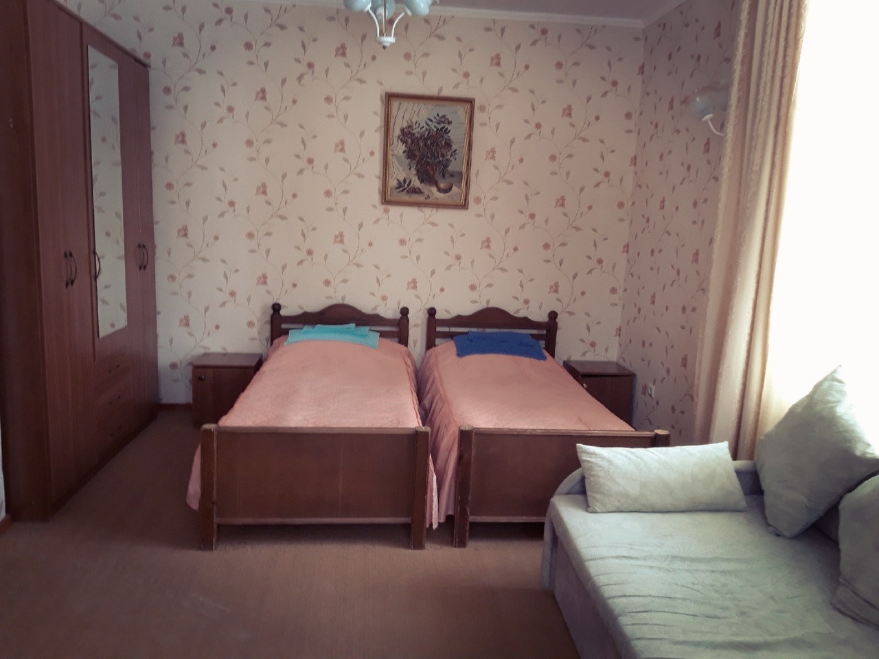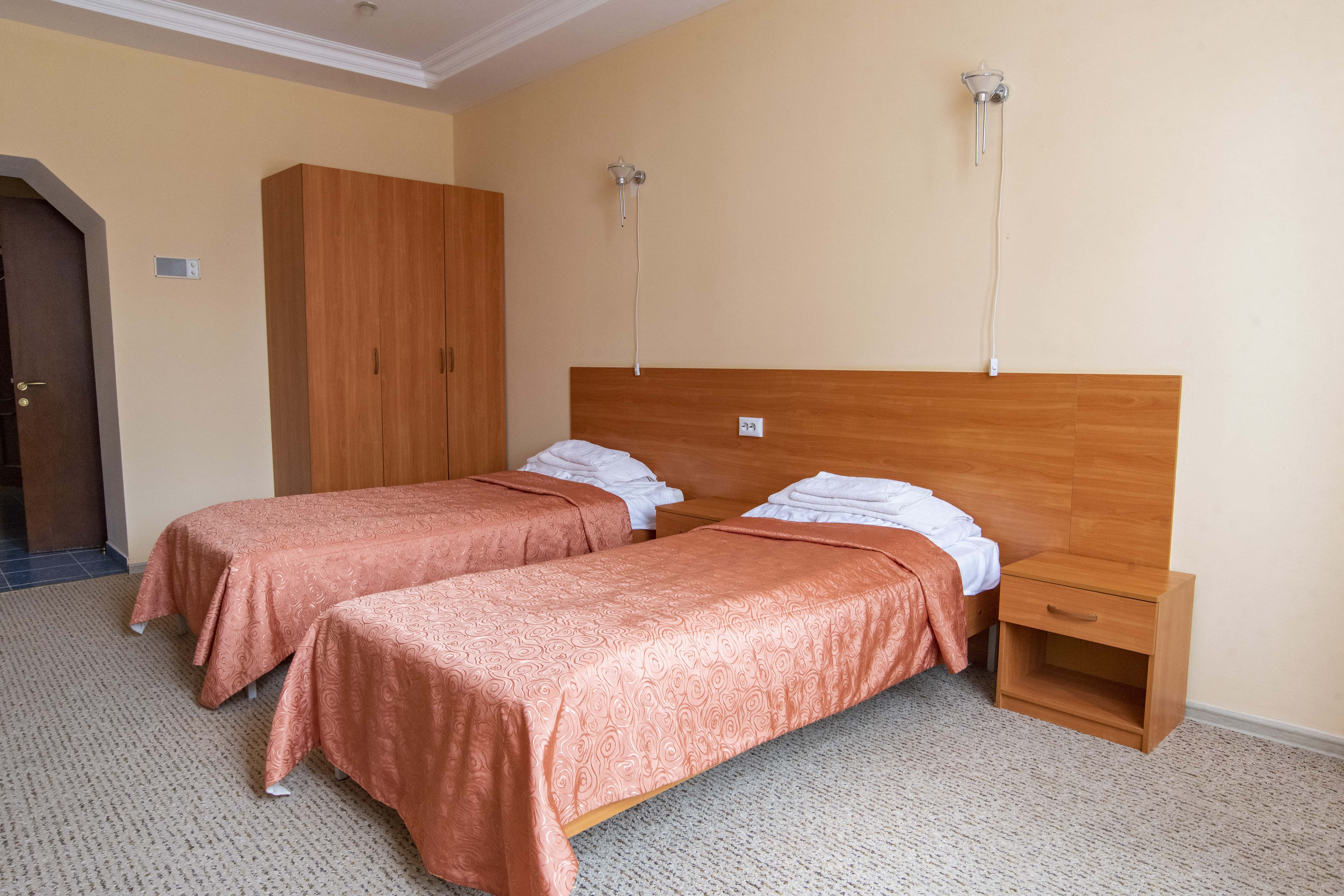 кровати односпальные /одна двуспальная кровать, прикроватные тумбочки, столик журнальный, шкаф