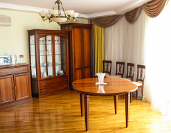вешалка, диван раскладной, зеркало, комод, кресла, кровать двуспальная, прикроватные тумбочки, стол, столик журнальный, стулья, шкаф, шкаф для посуды