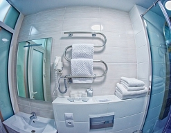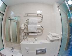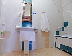 с ванной или душевой кабиной, туалетные принадлежности, фен