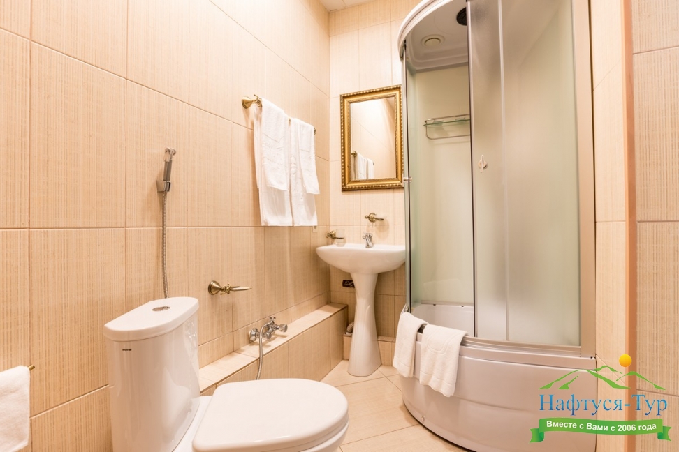 с ванной и душевой кабиной, туалетные принадлежности