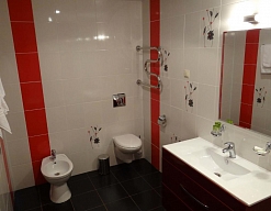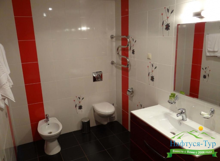биде, с ванной, тапочки, туалетные принадлежности, фен, халат