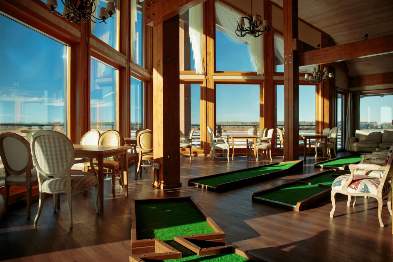- на территории расположились профессиональное 18-луночное поле для гольфа