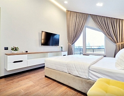гладильная доска, кондиционер, кофемашина, микроволновая печь, набор посуды, плита электрическая, посудомоечная машина, стиральная машина, телевизор, утюг, холодильник, чайная станция, электрочайник