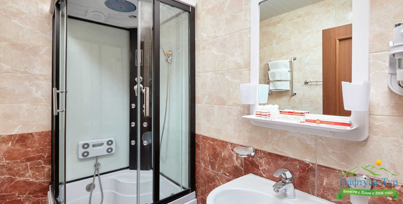 с душем, туалетные принадлежности, фен