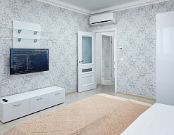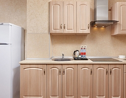 кондиционер, микроволновая печь, набор посуды, стиральная машина, телевизор, телефон, утюг, холодильник, электрическая плита, электрочайник
