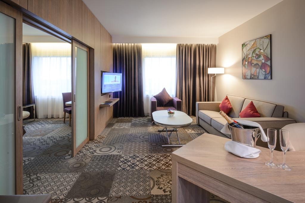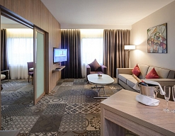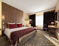 6-ти этажное современное здание отеля включает в себя 493 комфортабельных номера категории Стандарт, Люкс и Улучшенный. Стильные номера, оформленные в спокойной цветовой гамме с использованием ярких акцентов, оснащены всей необходимой техникой, качественной мебелью, ванной с косметическими принадлежностями.