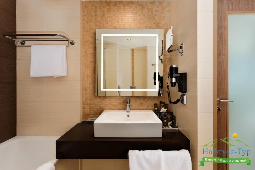 с ванной, туалетные принадлежности, фен