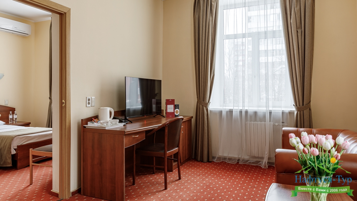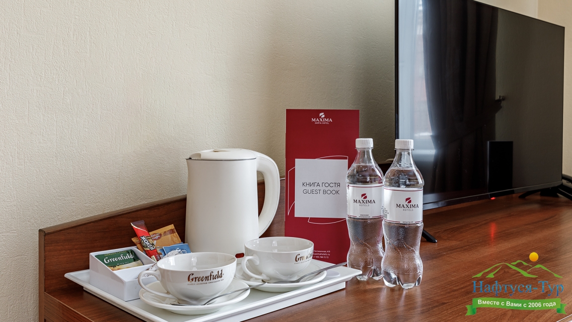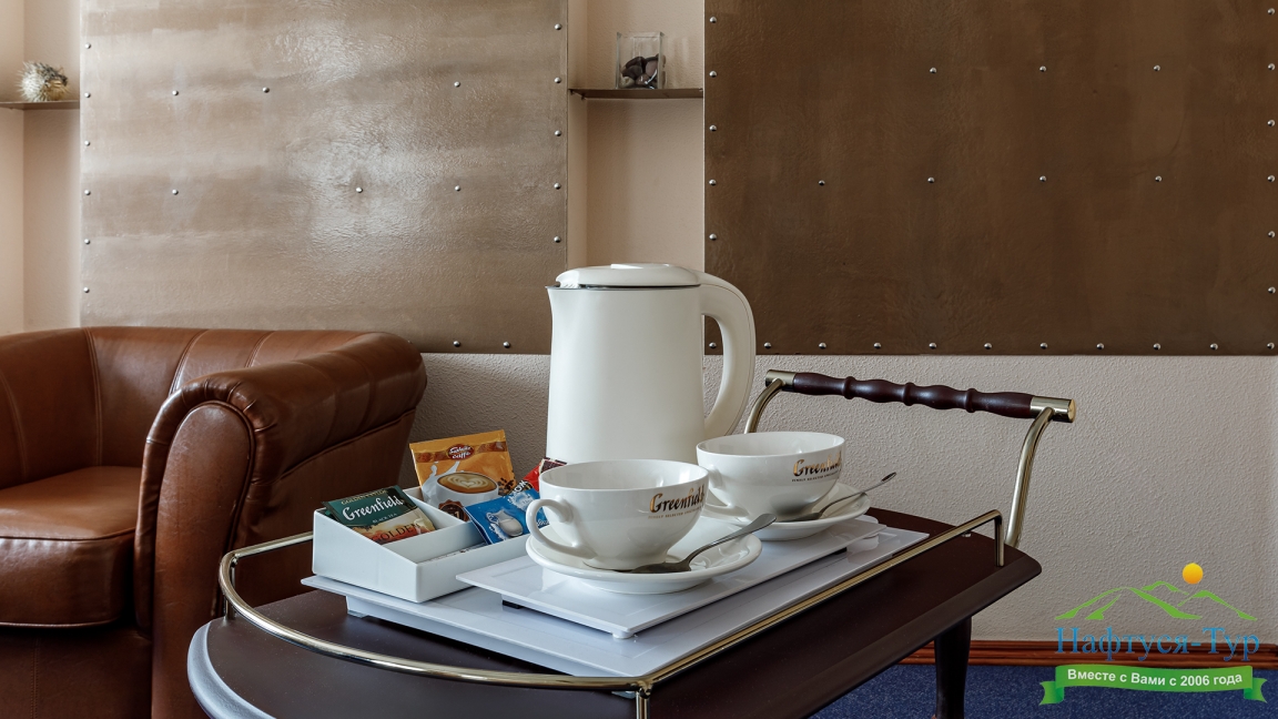 кондиционер, сейф, телевизор ЖК, телефон, холодильник, чайный набор посуды, электрочайник