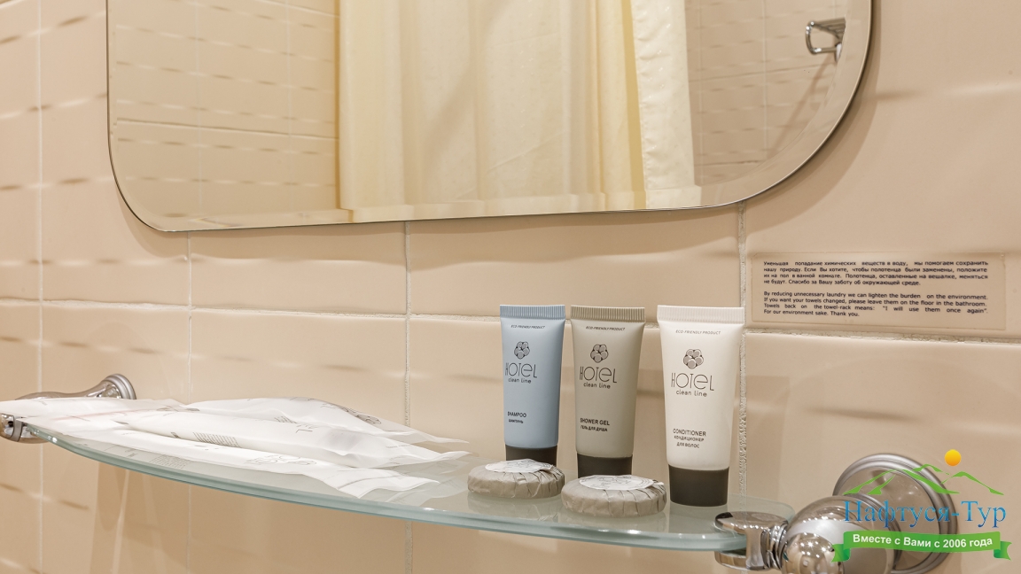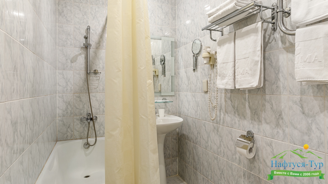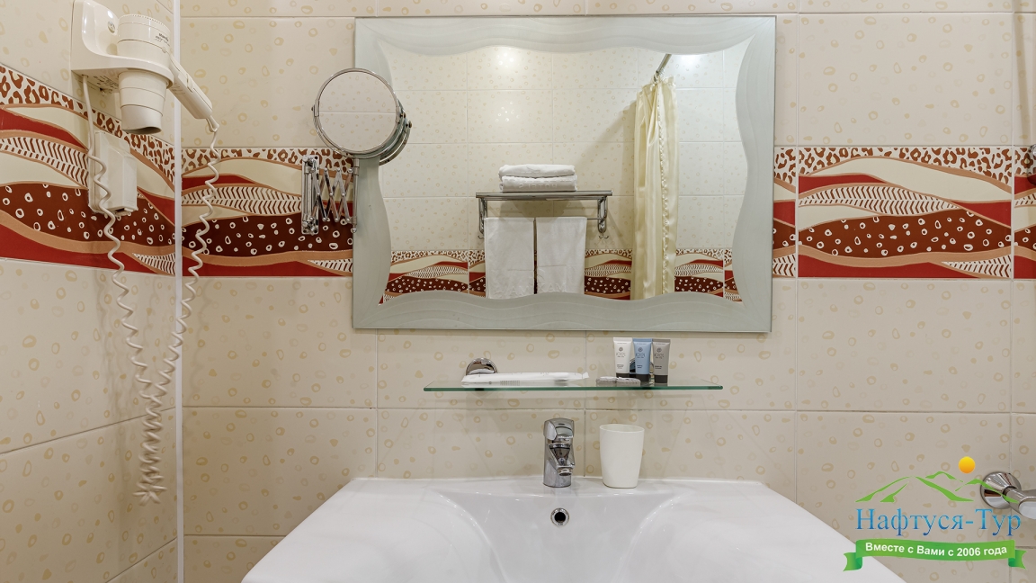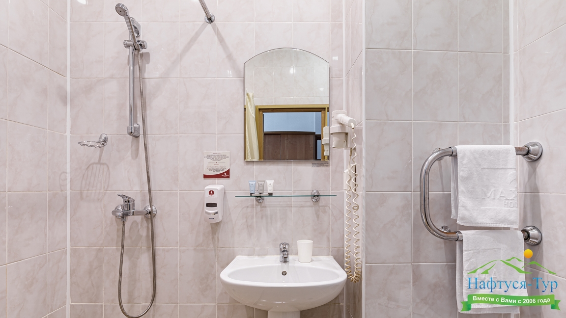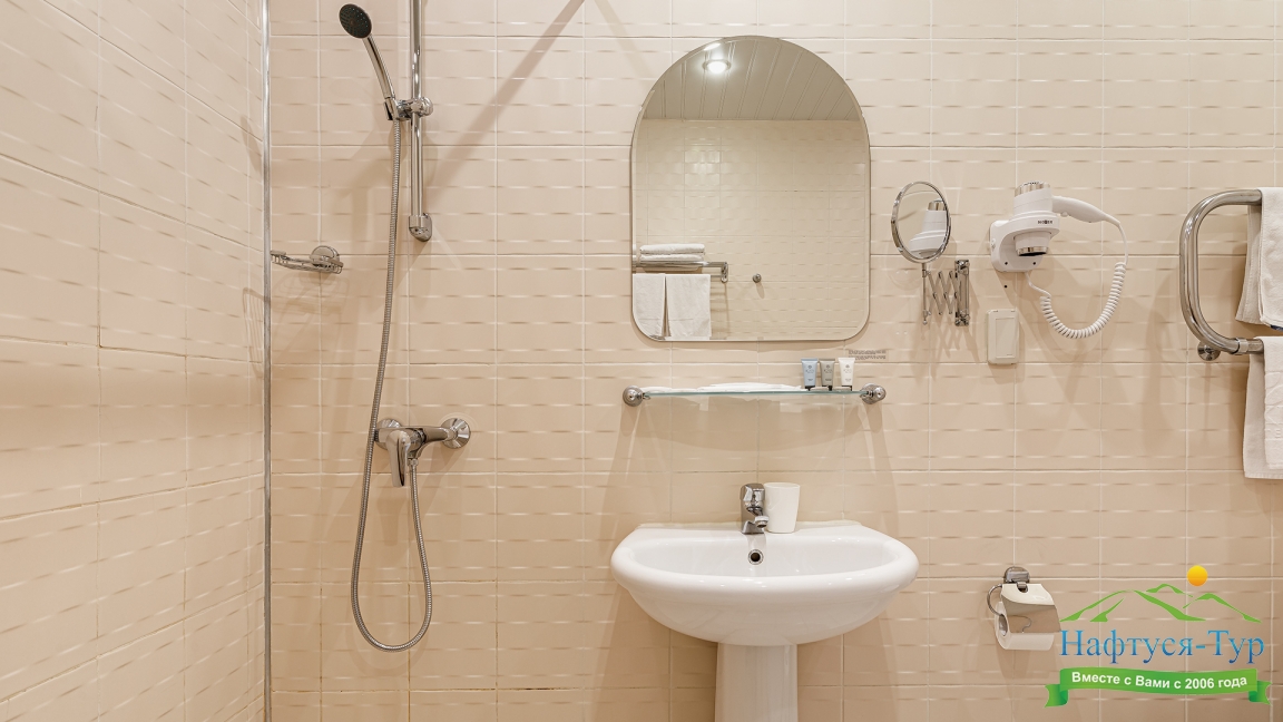 с душем, туалетные принадлежности, фен