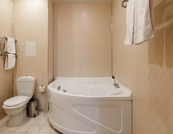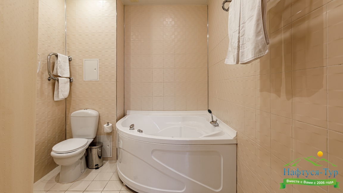 с джакузи, с душем, тапочки, туалетные принадлежности, фен, халат