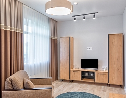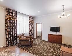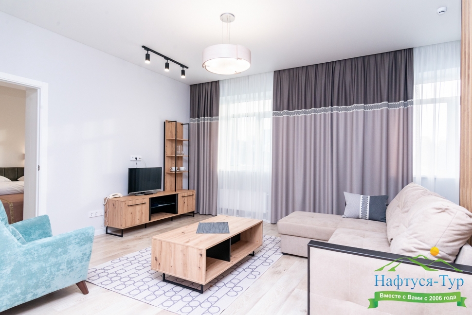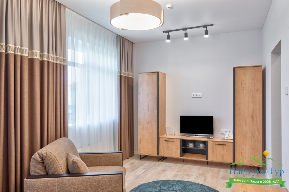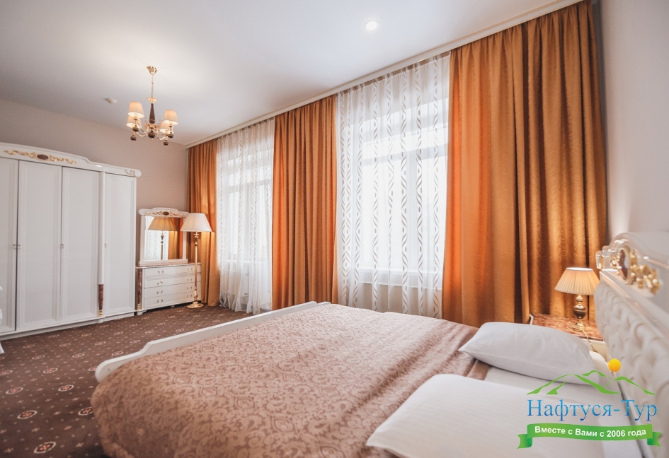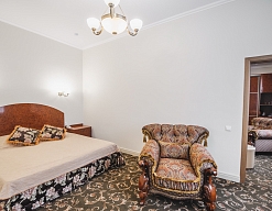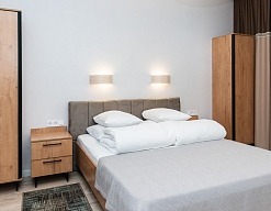 кресла, кровать двуспальная/ две полутороспальные кровати, прикроватные тумбочки, столик журнальный, стулья, шкаф