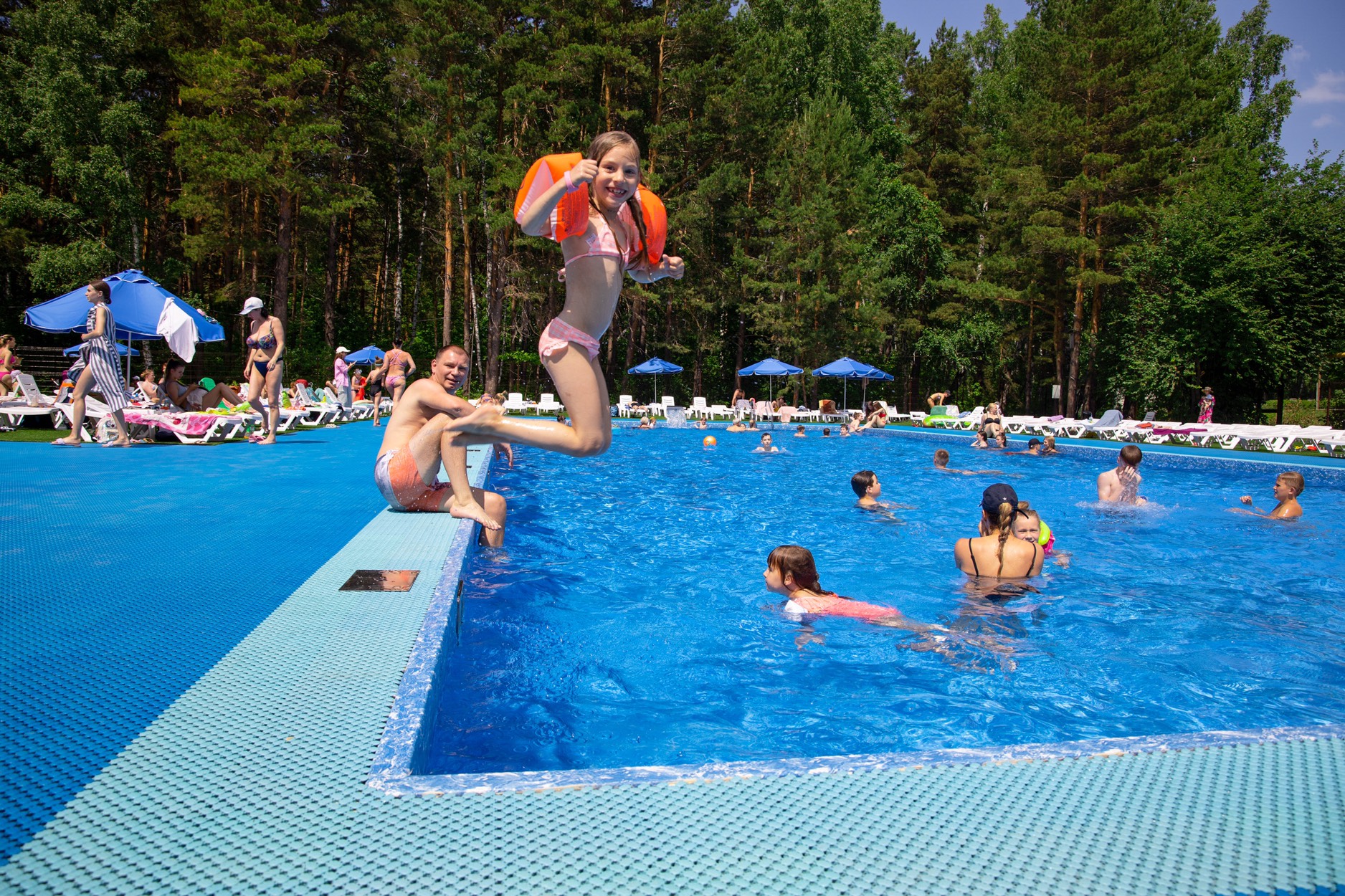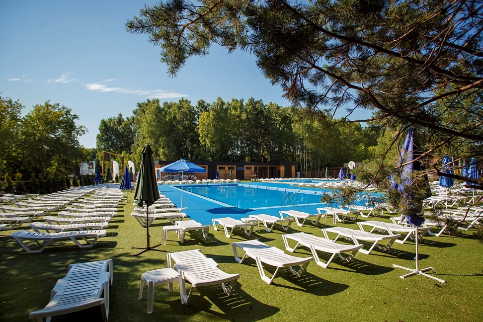 • Бассейн открытый, 25х20, вода пресная, шезлонги, зонты.