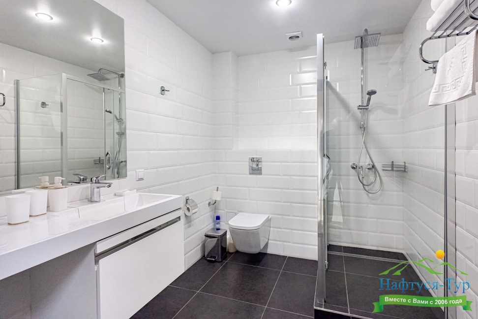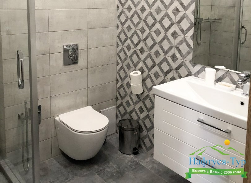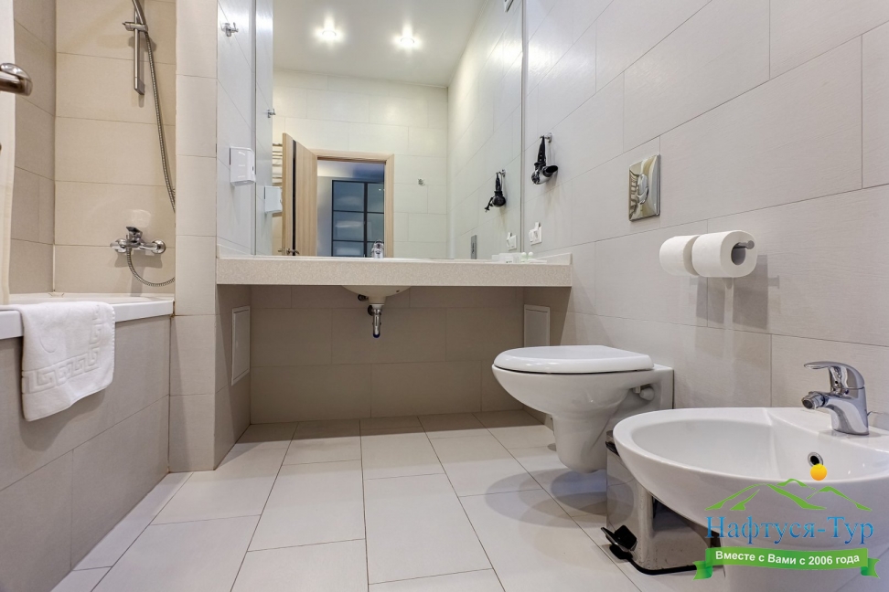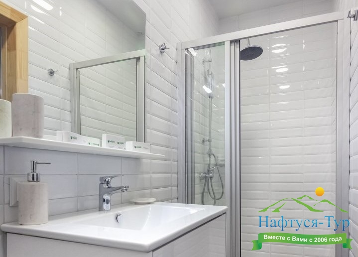 с ванной или душевой кабиной, туалетные принадлежности