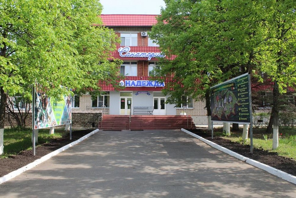 Санаторий "Надежда" расположен в одном из живописнейших уголков Поволжья, в 130 км от г. Пенза, в 7 км от г. Кузнецка на опушке векового леса. Лесопарковая территория здравницы занимает площадь около 14 га.
