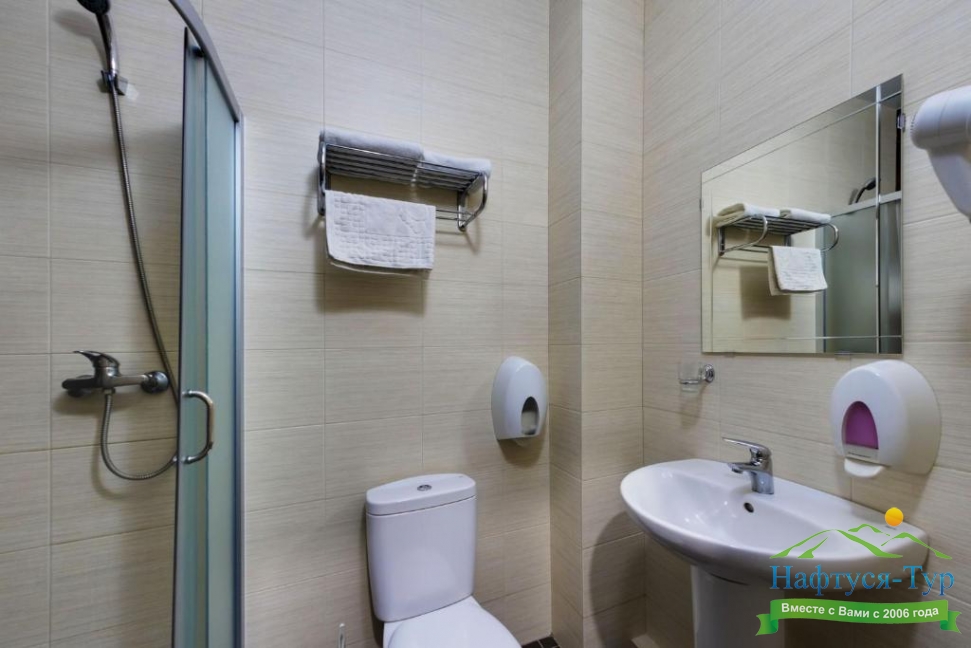 с душем, туалетные принадлежности, фен