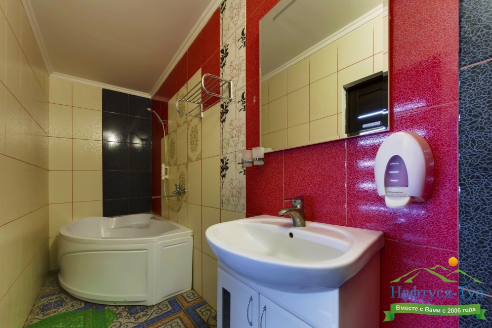 с ванной, туалетные принадлежности, фен