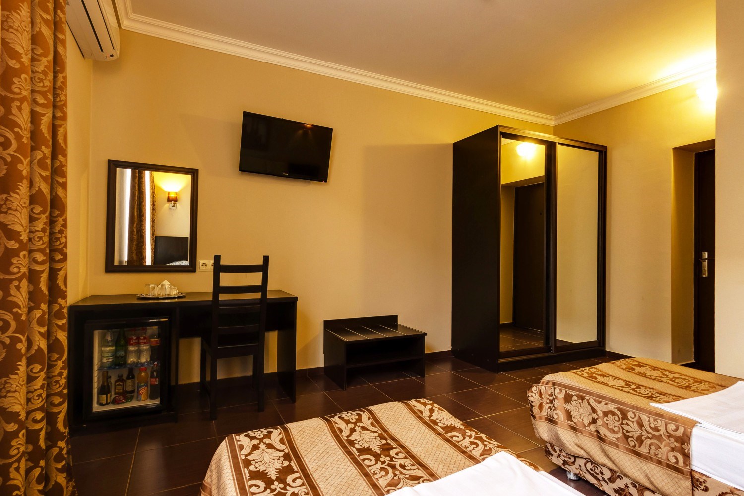 мини-холодильник, набор посуды, сплит-система, телевизор ЖК, телефон