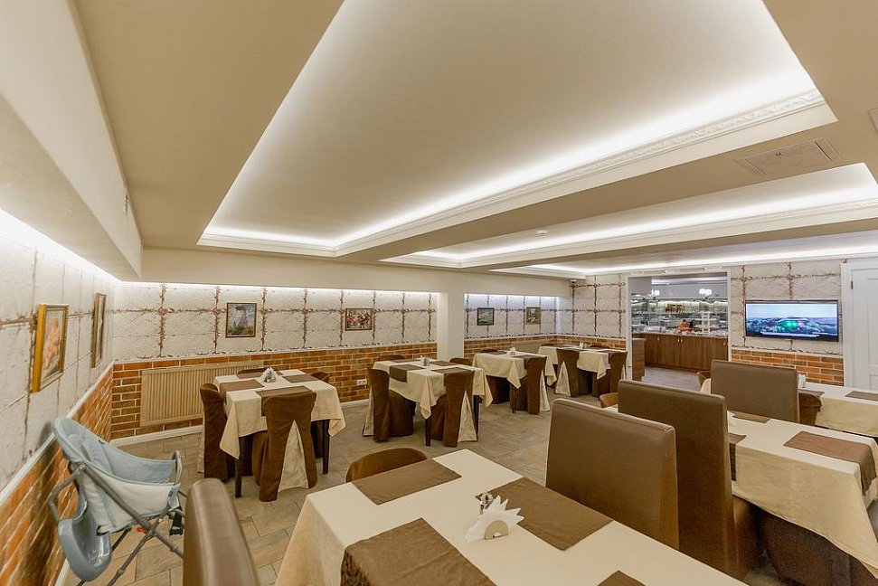 В отеле работает ресторан, где гостям подаются блюда русской кухни. На территории ловит сеть wi-fi, отдыхающим доступны услуги прачечной,