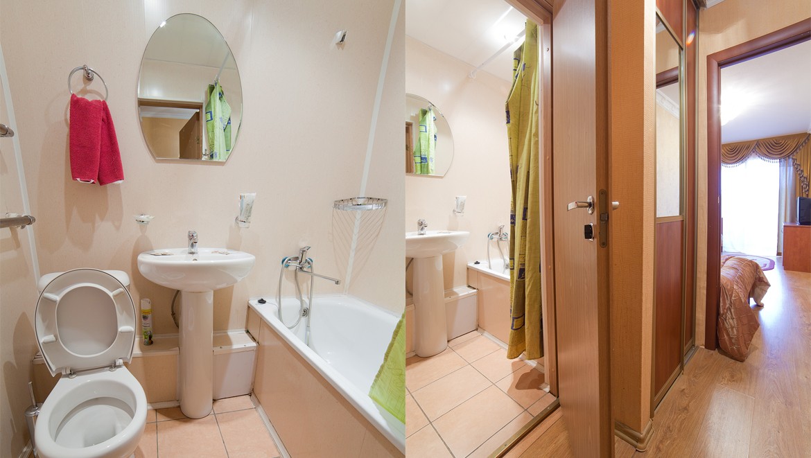 Номера требуют ремонта, особенно санитарная комната.