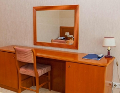 зеркало, комод, кровати односпальные /одна двуспальная кровать, прикроватные тумбочки, стол, столик туалетный, стул, шкаф