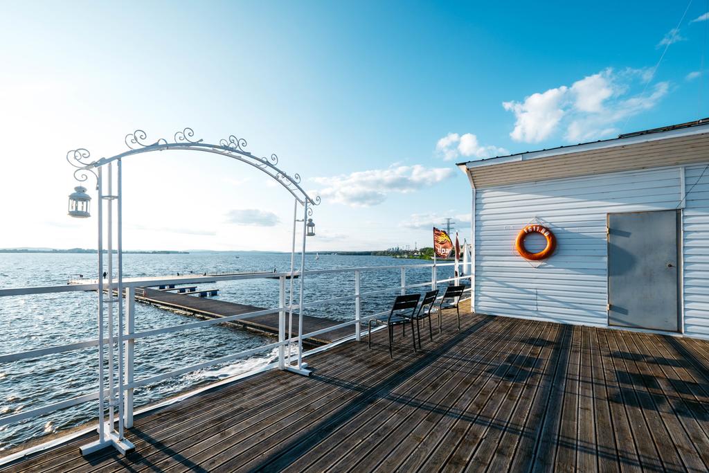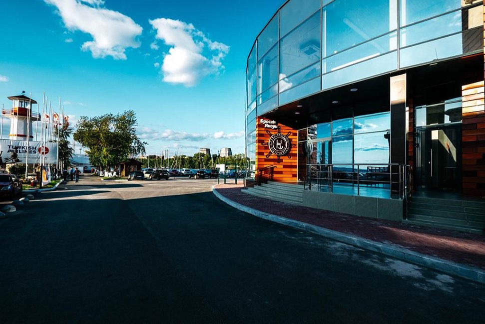 Завтрак по шведской линии предоставляется в кафе «Крюк» на 2 этаже отеля. Здесь же можно пообедать по меню бизнес-ланча или поужинать по основному меню. На 1 этаже работает кают-компания «Бросай якорь». Здесь гостей ждет морская атмосфера, панорамные окна, богатая чайная карта и ароматный кофе.