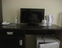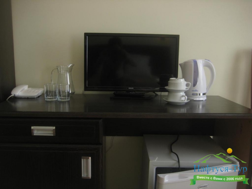 телевизор, холодильник, чайный набор посуды, электрочайник