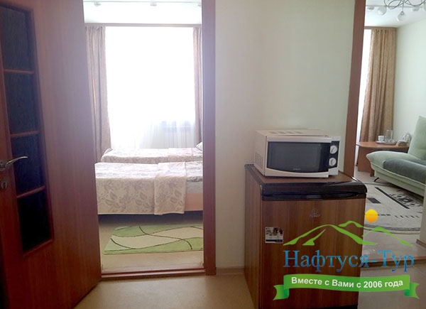 микроволновая печь, мини-холодильник, телевизор ЖК, чайный набор посуды, электрочайник