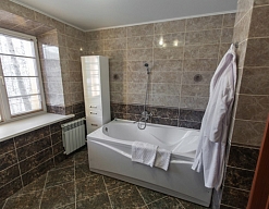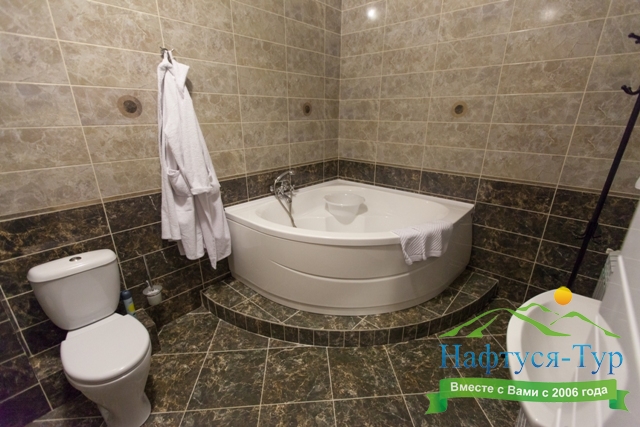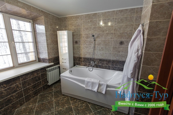 с ванной, туалетные принадлежности, фен, халат