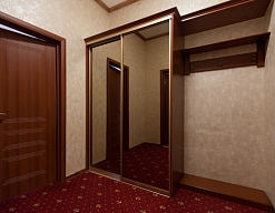 вешалка, диван, зеркало, кровать двуспальная, прикроватные тумбочки, стол, столик журнальный, стулья, шкаф-купе