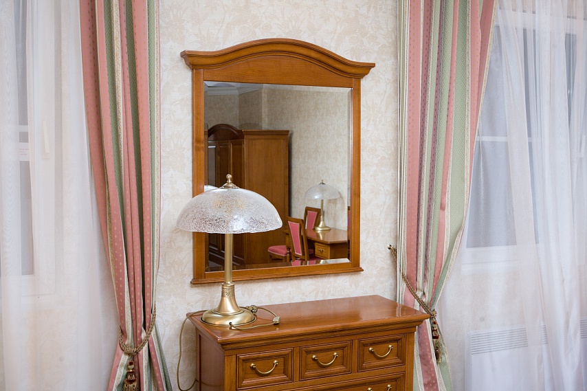 вешалка, диван, зеркало, кресла, кровать двуспальная, прикроватные тумбочки, стол, столик журнальный, стулья, шкаф