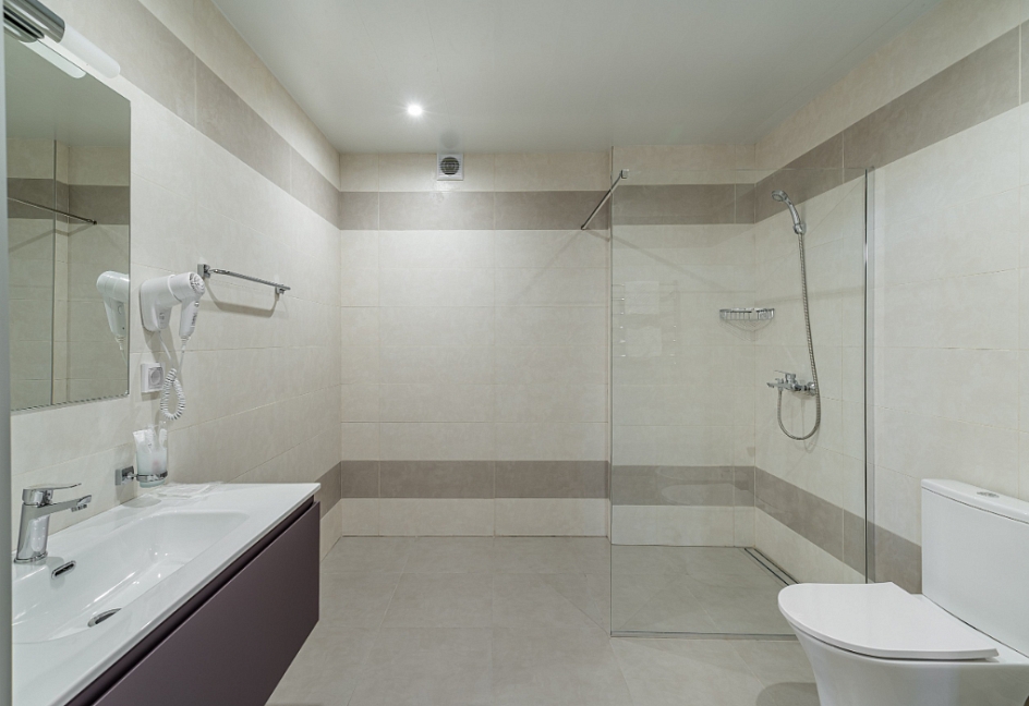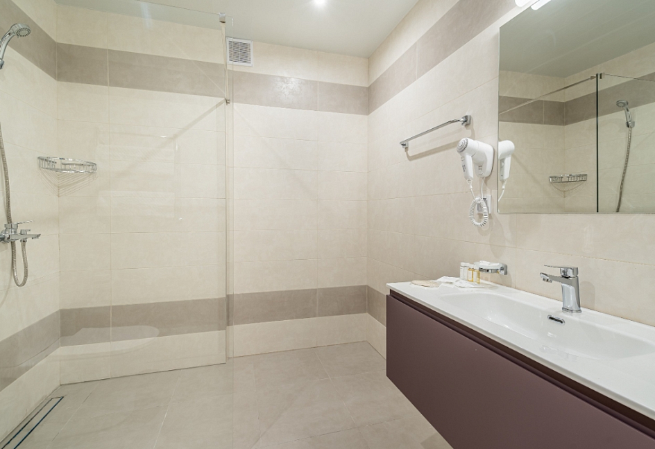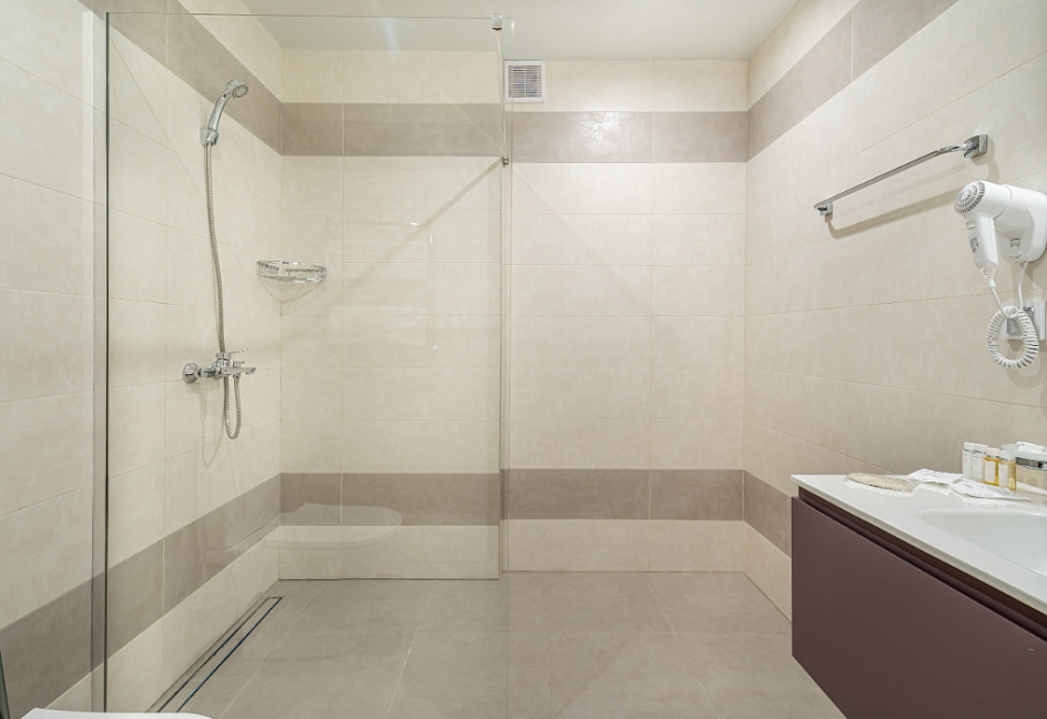 с душем, туалетные принадлежности, фен