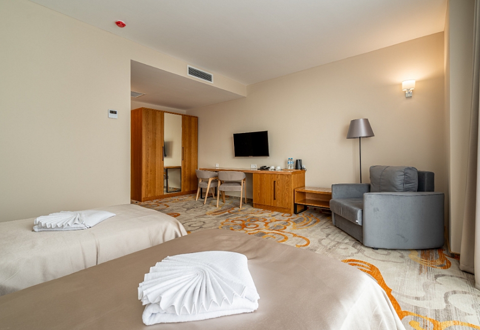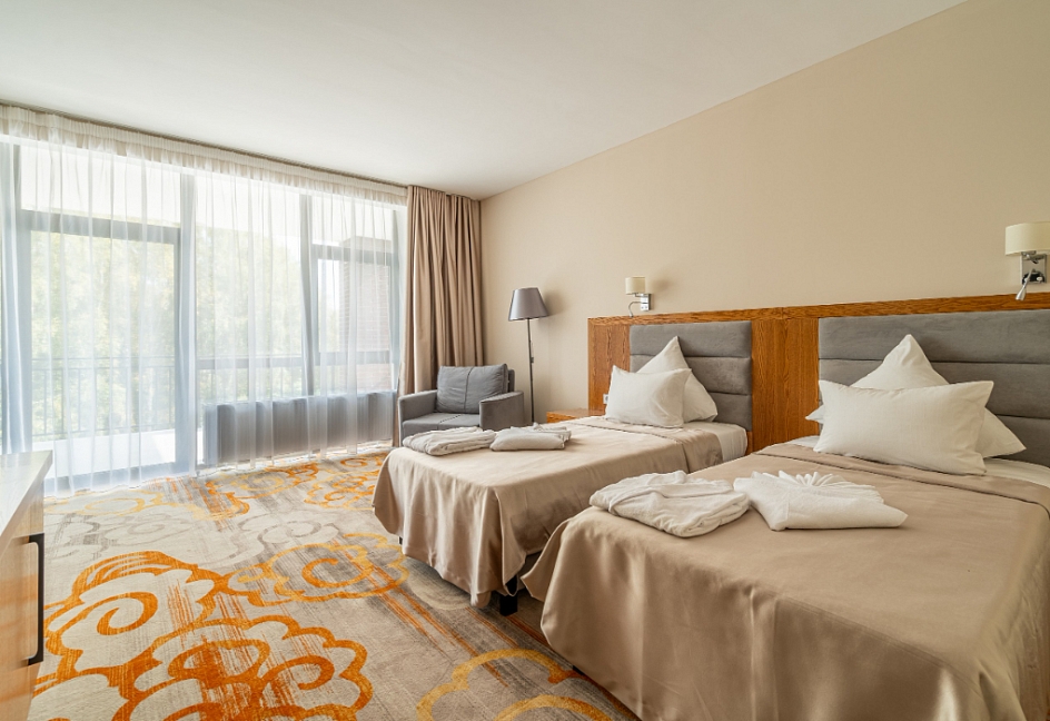 Путевка по акции по программе "Beauty & Relax": проживание, 3-х разовое питание, оздоровительные процедуры по программе. Тариф доступен для гостей от 18 до 65 лет